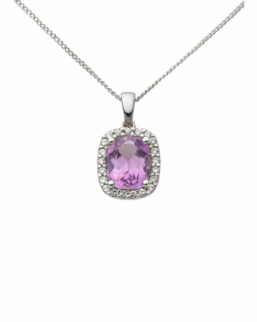 Anheng i 14k hvitt gull med ametyst og diamanter