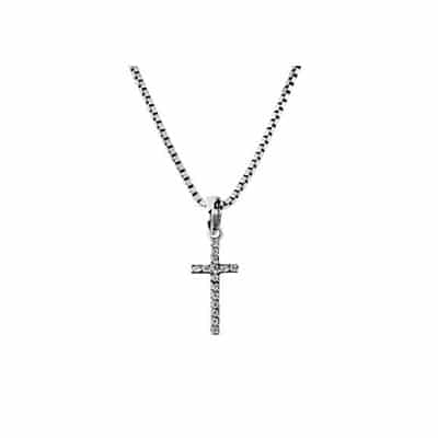 Anheng kors hvitt gull med zirconia – Uten kjede