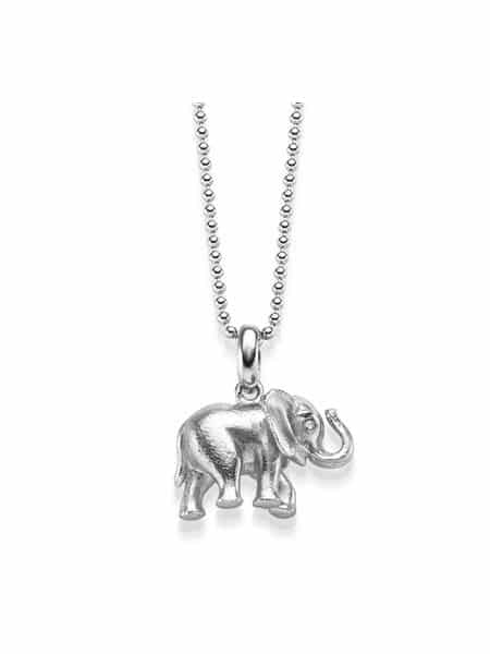 Lykkeelefanten smykke i sølv – Rhodinert. Lengde 80 cm