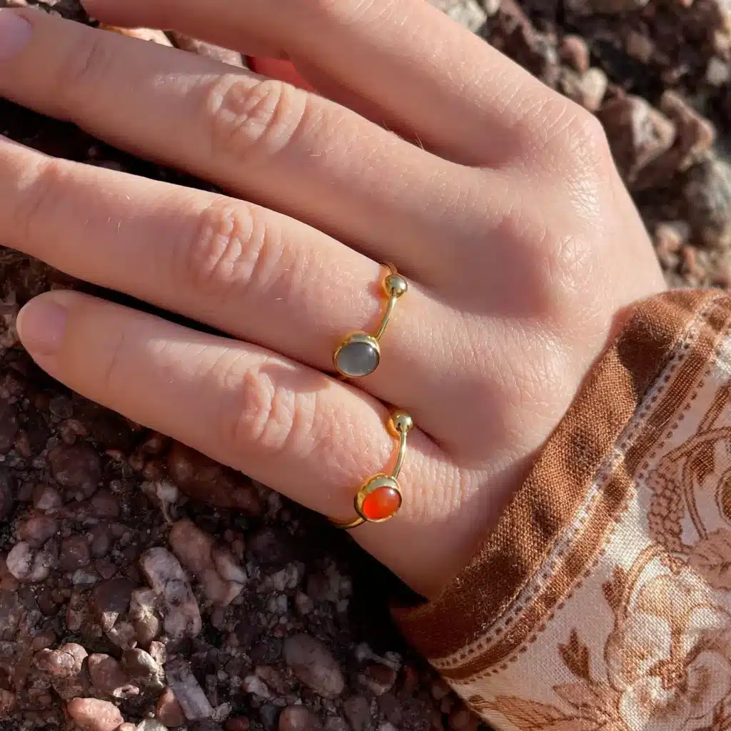 Koulè ring forgylt 6mm grå månestein