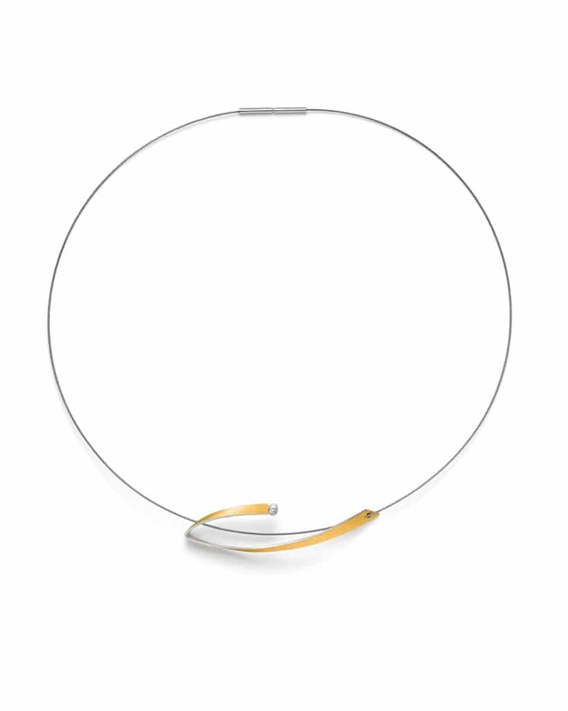 Manu Schmuck – Anheng i sølv og gull på wire med 0,03ct Tw/Si, Lengde 45cm