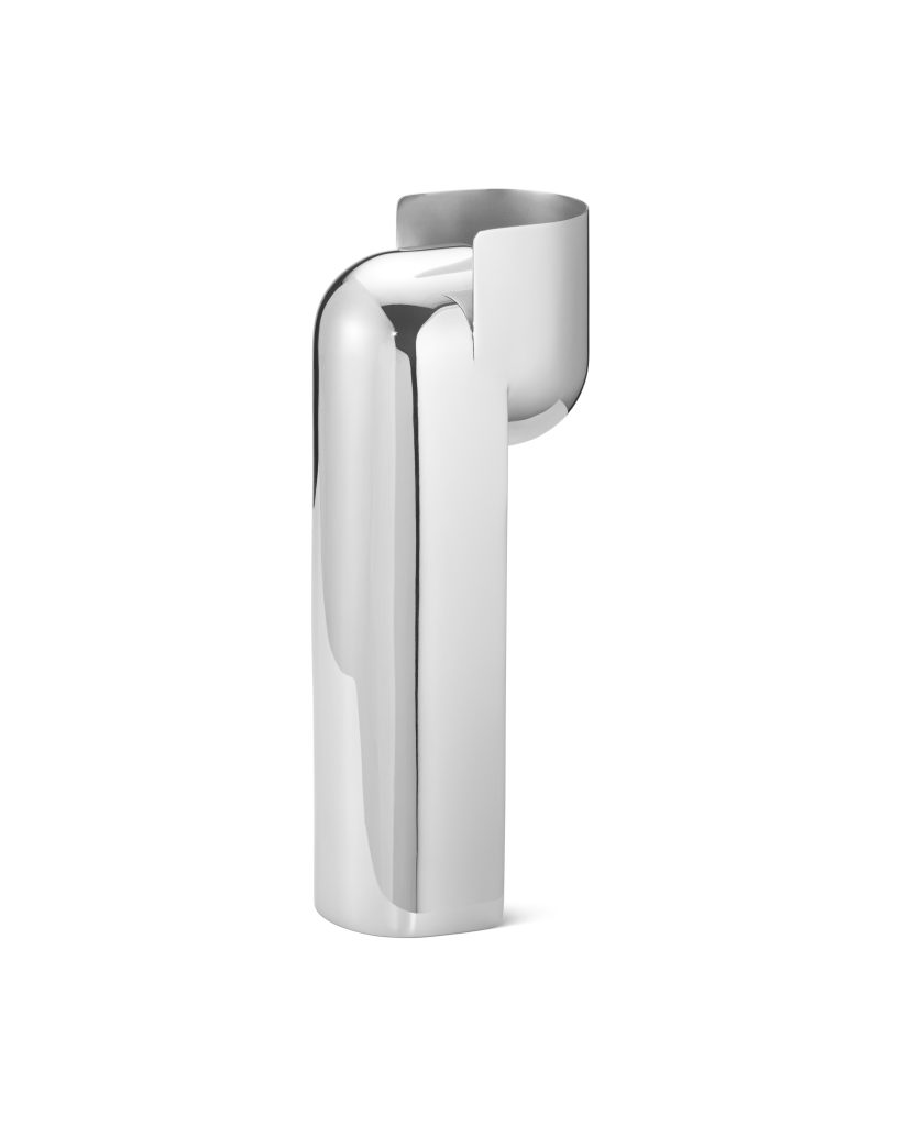 Utført i blankpolert rustfritt stål, reflekterer lysestaken omgivelsene på en vakker måte og gir et moderne, men rolig uttrykk. Den fungerer utmerket som et enkeltstående designobjekt, men kommer også til sin rett i kombinasjon med andre deler fra Nendo-serien for et helhetlig og sofistikert uttrykk.