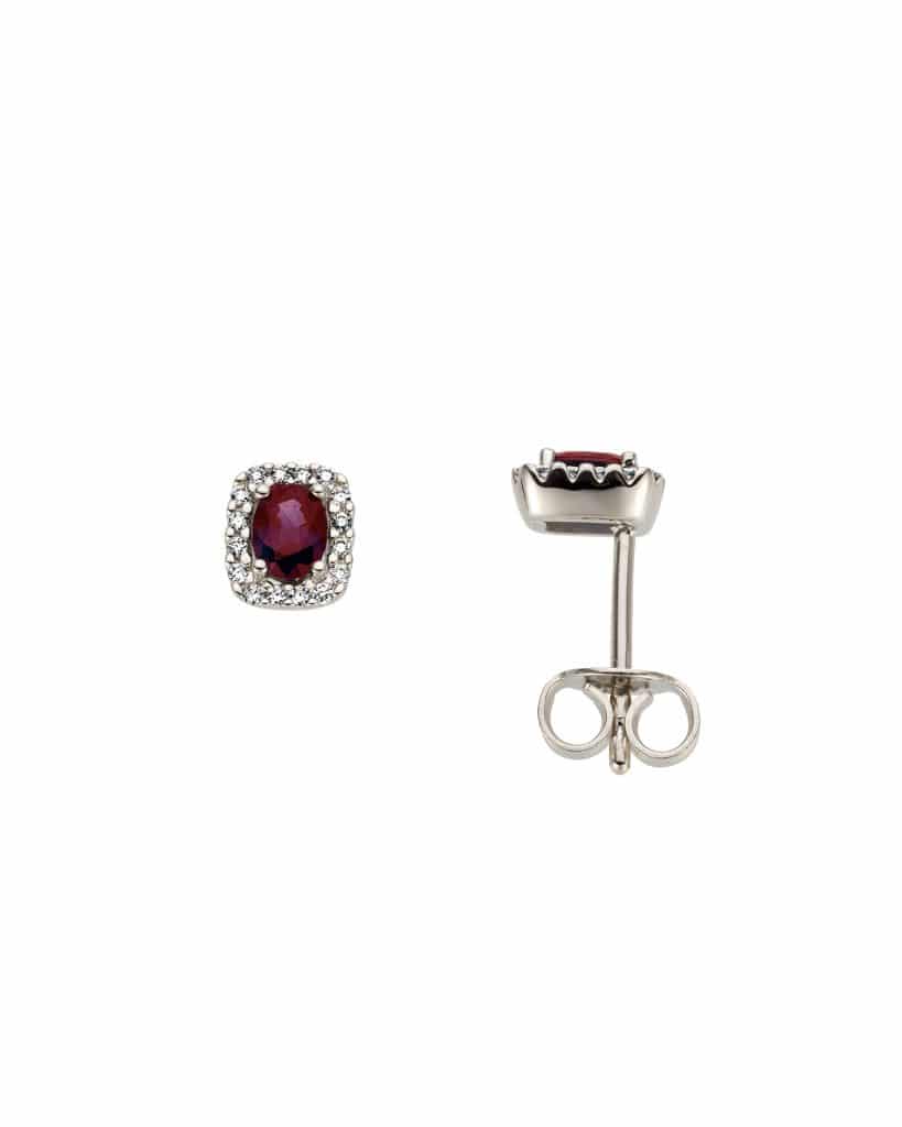 Ørepynt i hvitt gull med rubin og diamanter