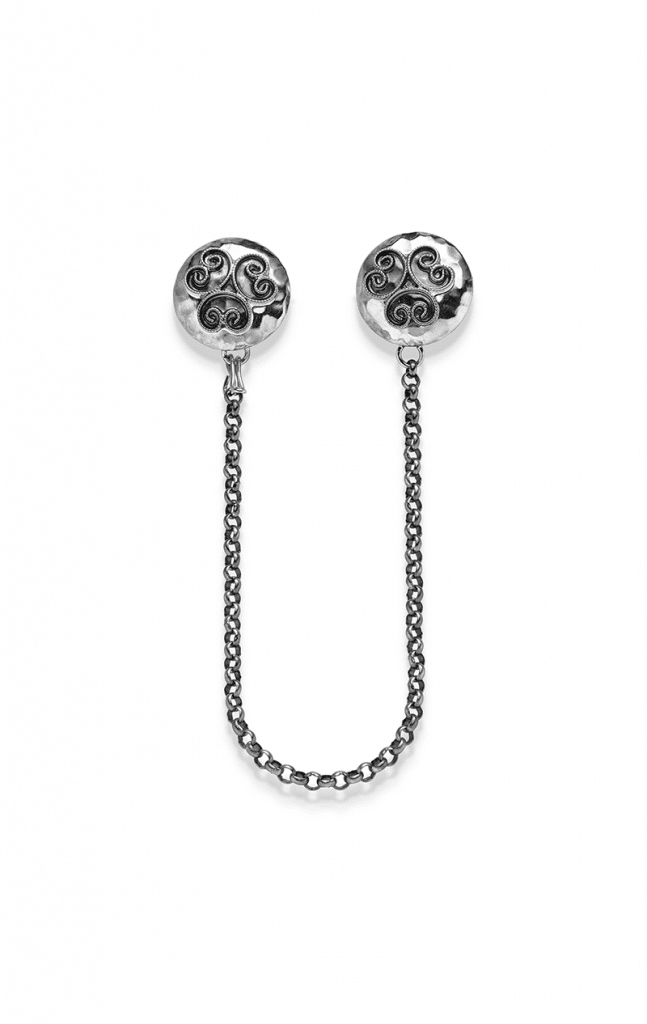 Otteren Bunadsølv – Oksiderte Sjalknapper med kjede u/kjørner