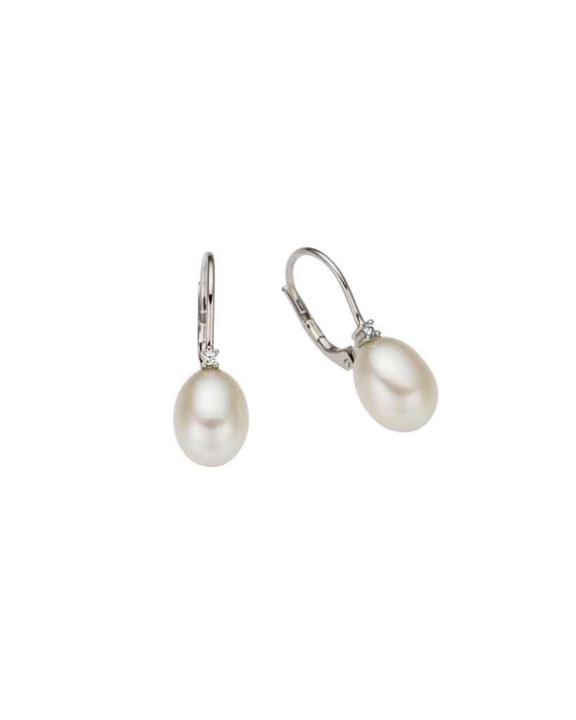 Perleørepynt hvitt gull 0.02ct